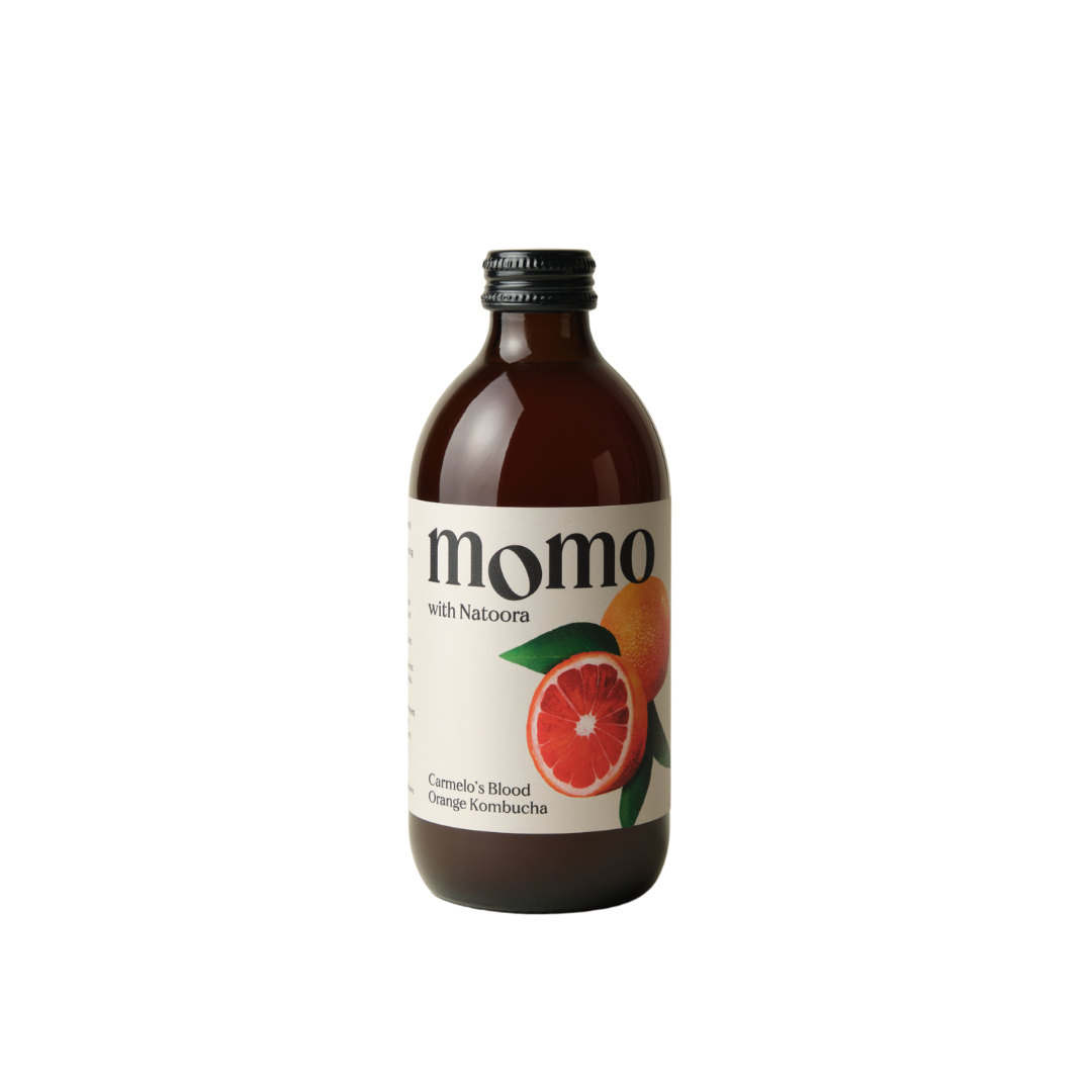 Our latest seasonal collaboration with Natoora uses Carmelo's vibrantly coloured Moro Blood Oranges, bursting with bright citrus acidity and deep berry-like sweetness. Grown in Sicily, these Blood Oranges thrive when the gap between day and night temperatures is at its most extreme. We've captured this moment in our limited-edition kombucha, blending Carmelo's exceptional harvest with our raw and unfiltered kombucha. With a shared commitment to quality and artistry, Natoora and MOMO are natural partners.