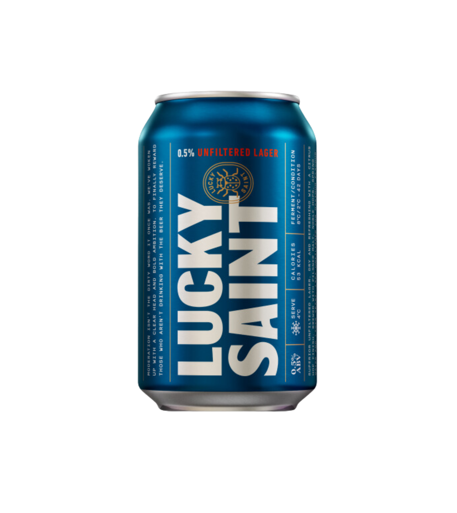 Lucky Saint is a 0.5% Superior Unfiltered Lager, full of body and flavour but without the alcohol - finally rewarding those who aren’t drinking with the beer they deserve.